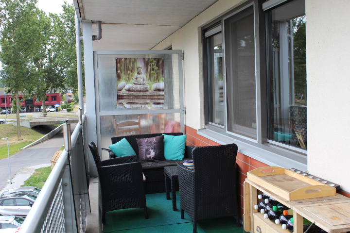 Vanuit de woonkamer heb je toegang tot het zeer ruime balkon.