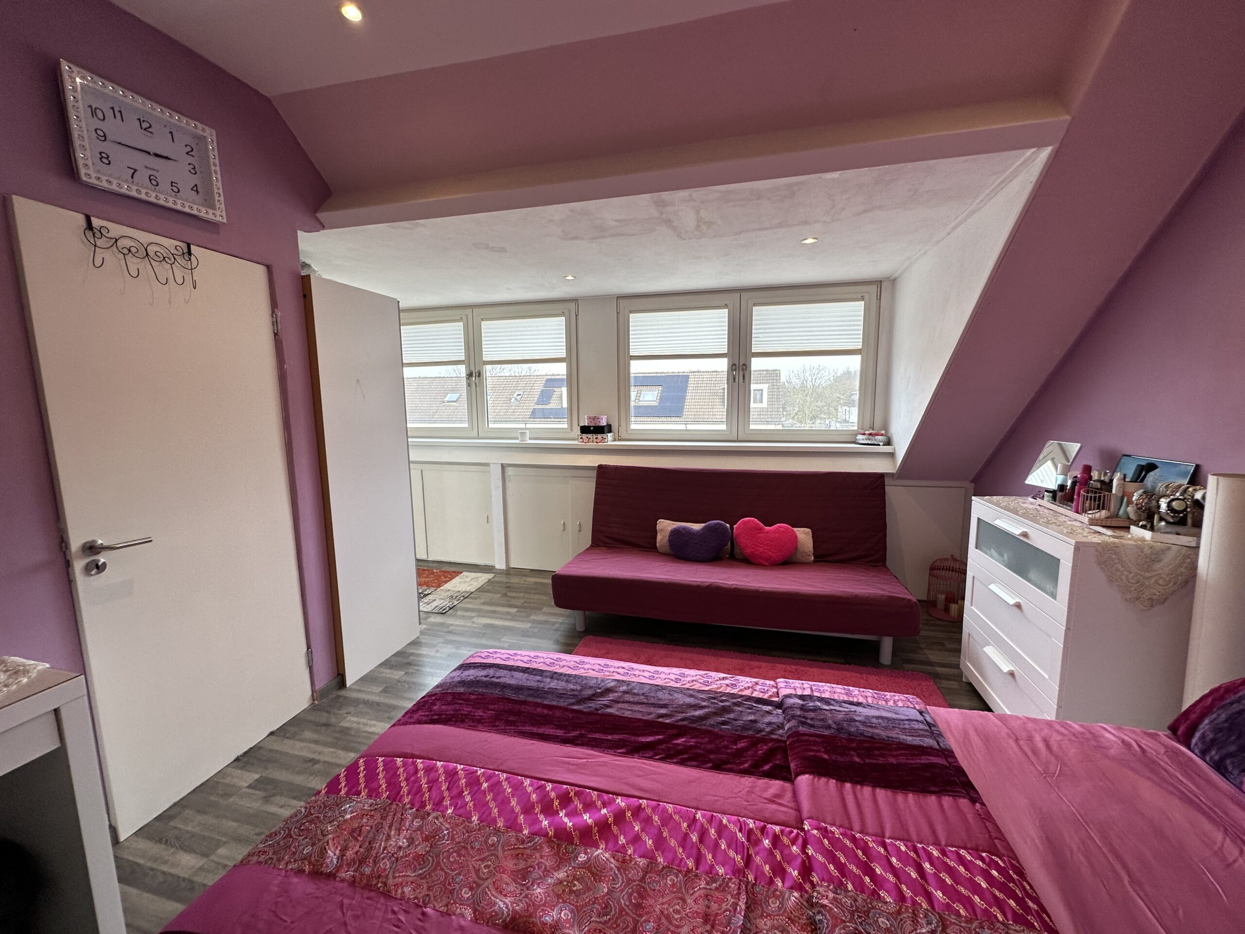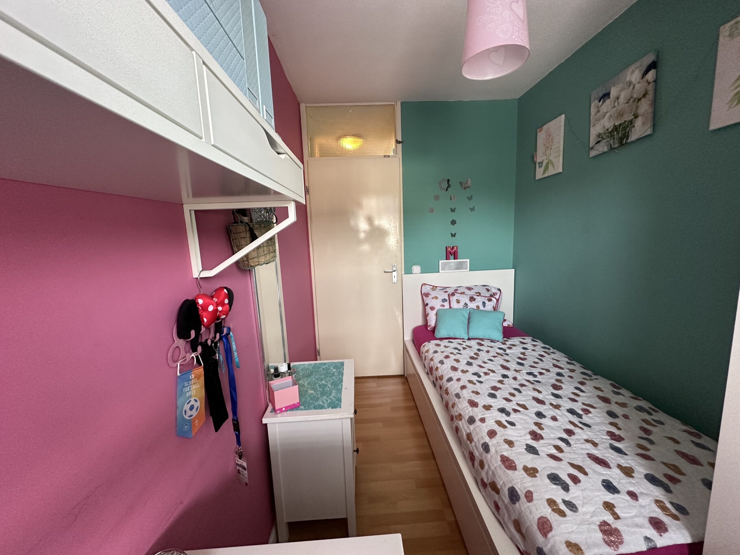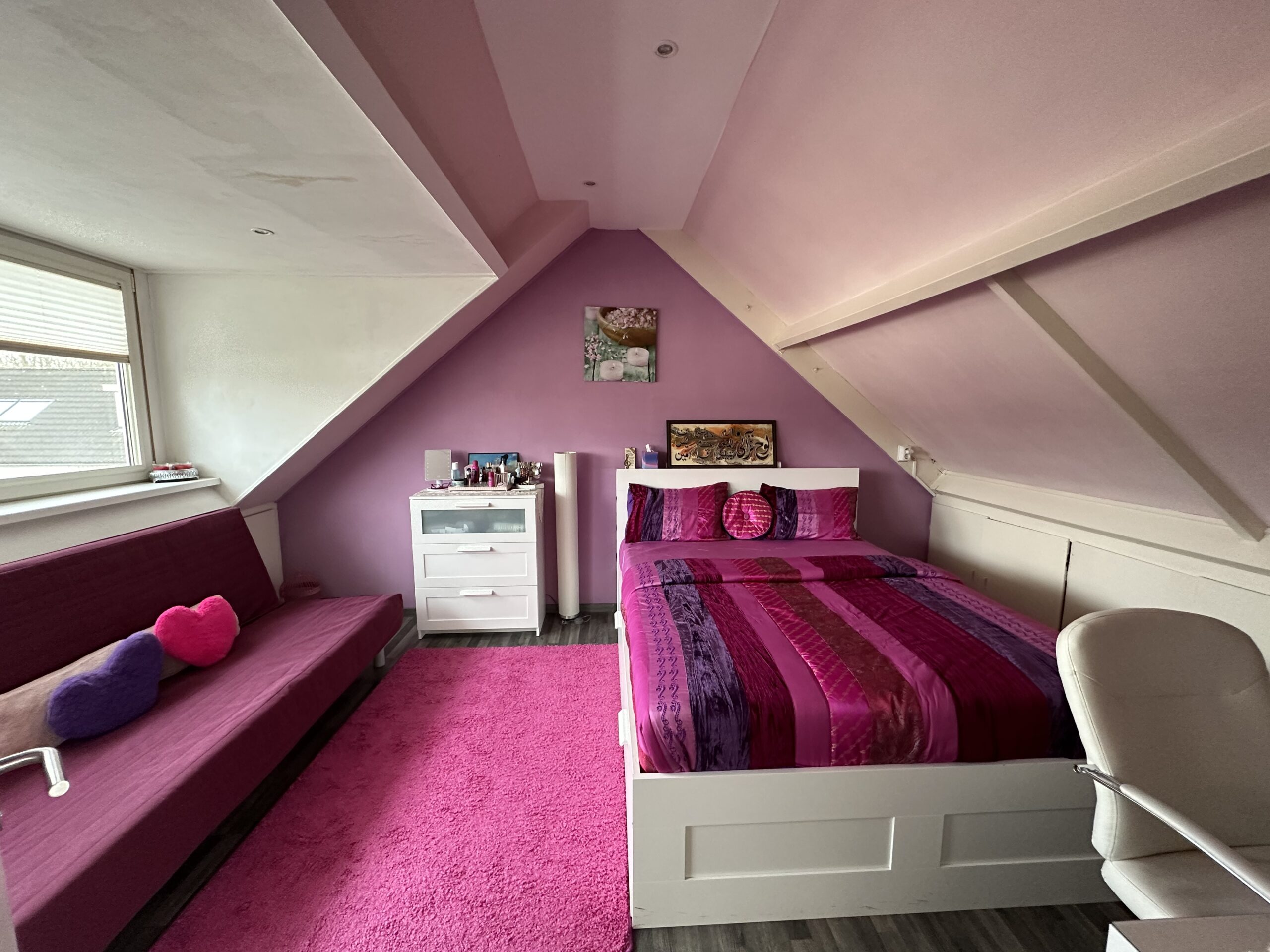 Twee slaapkamers liggen aan achterkant van het huis daar van is een slaapkamer wat groter dan de andere en in de voorkant van het huis is nog een slaapkamer . bovendien de voor kant van de eerste verdieping is gedekt met een nieuwe kunststof kozijnen van een jaar oud.
