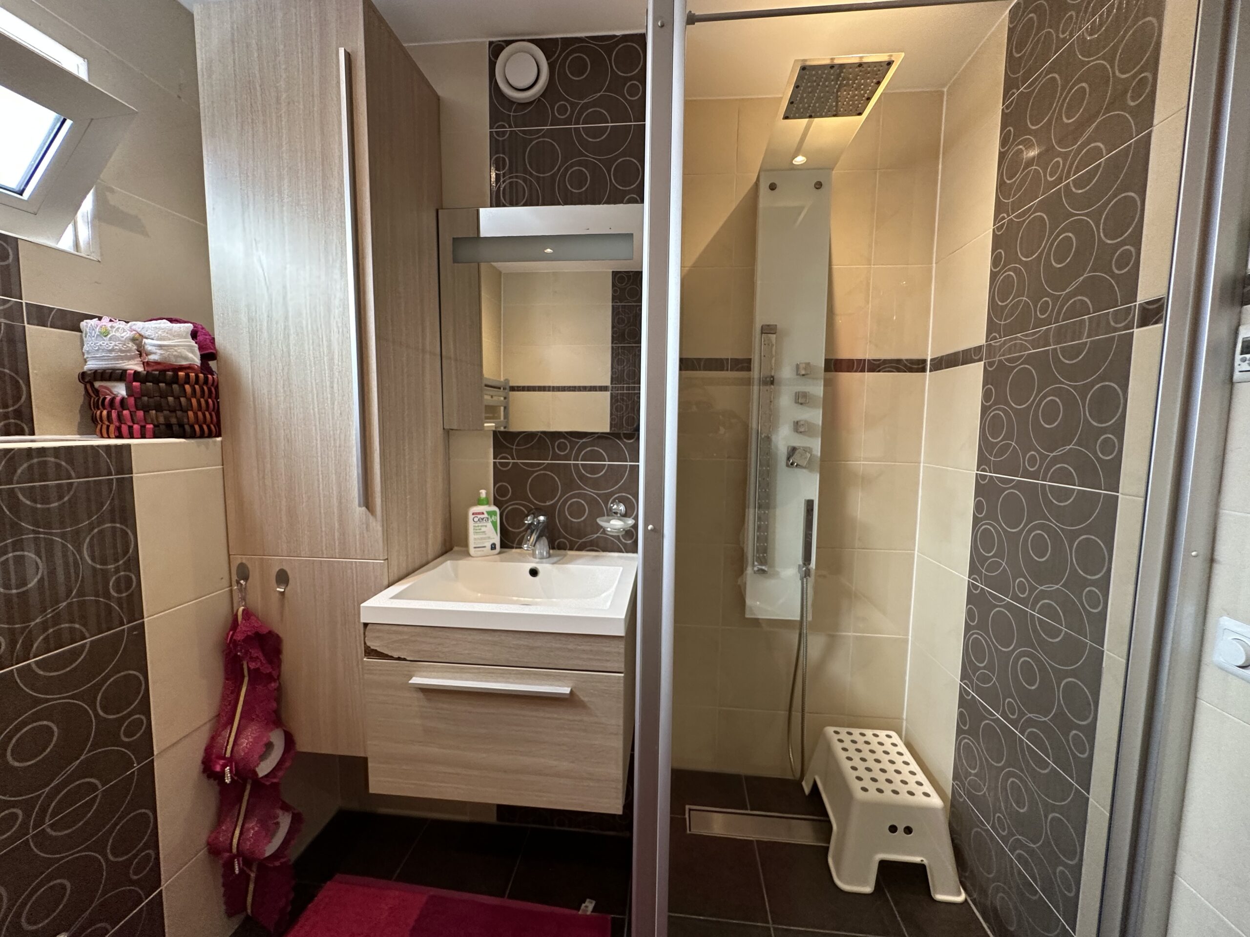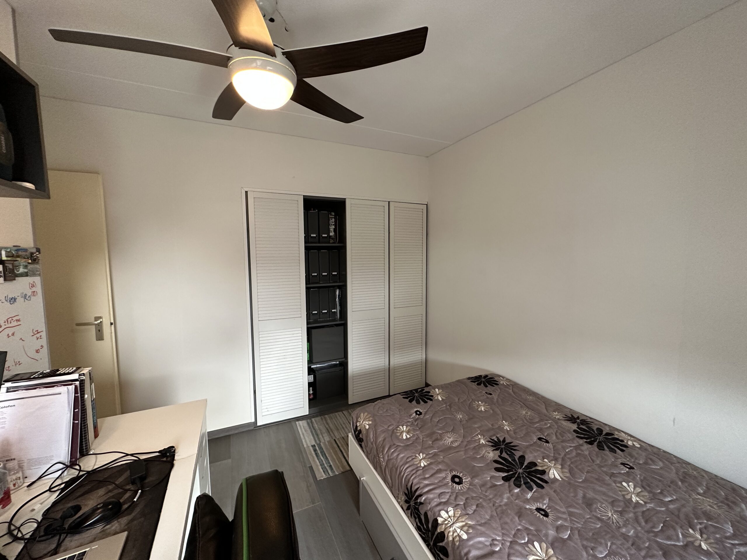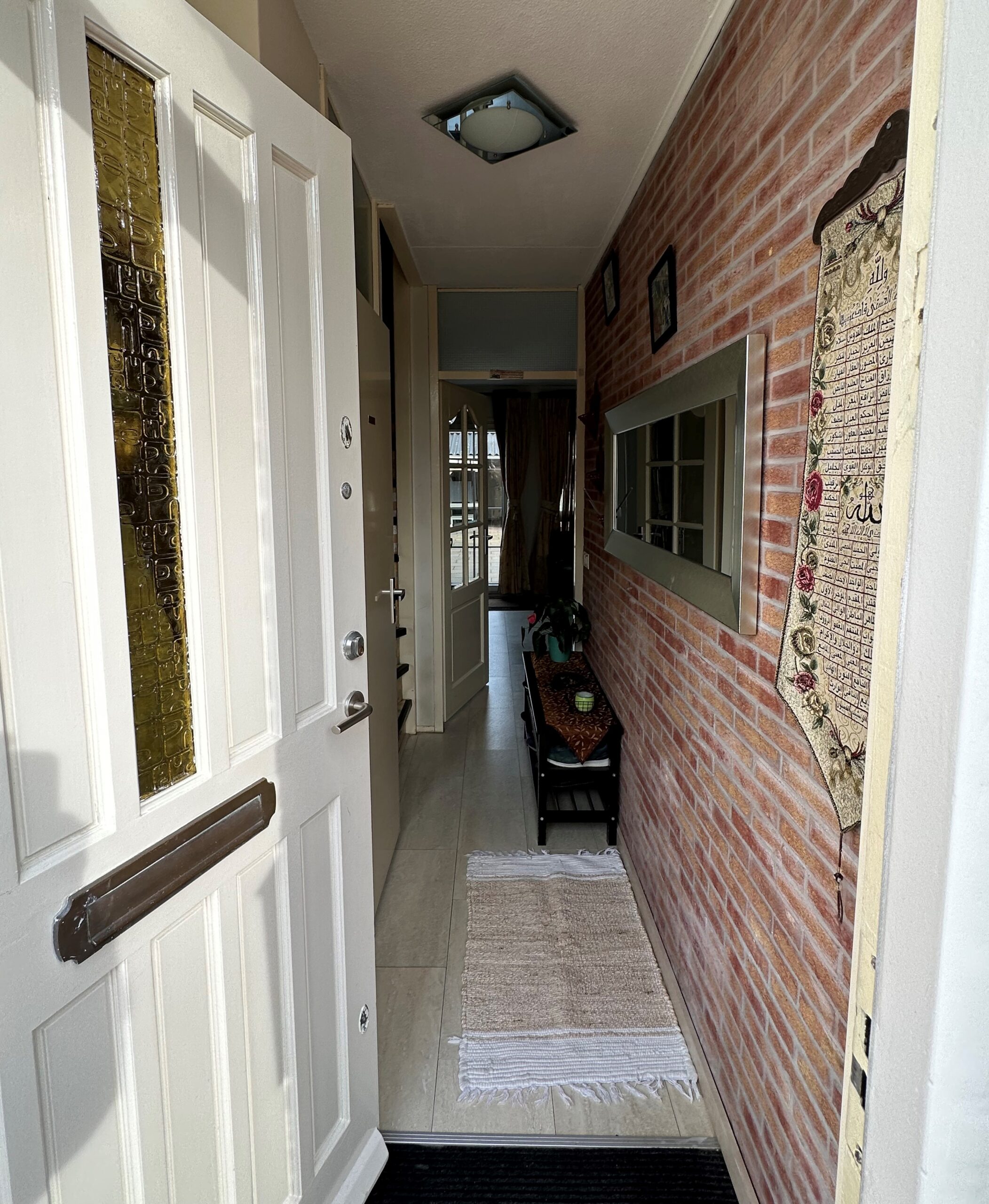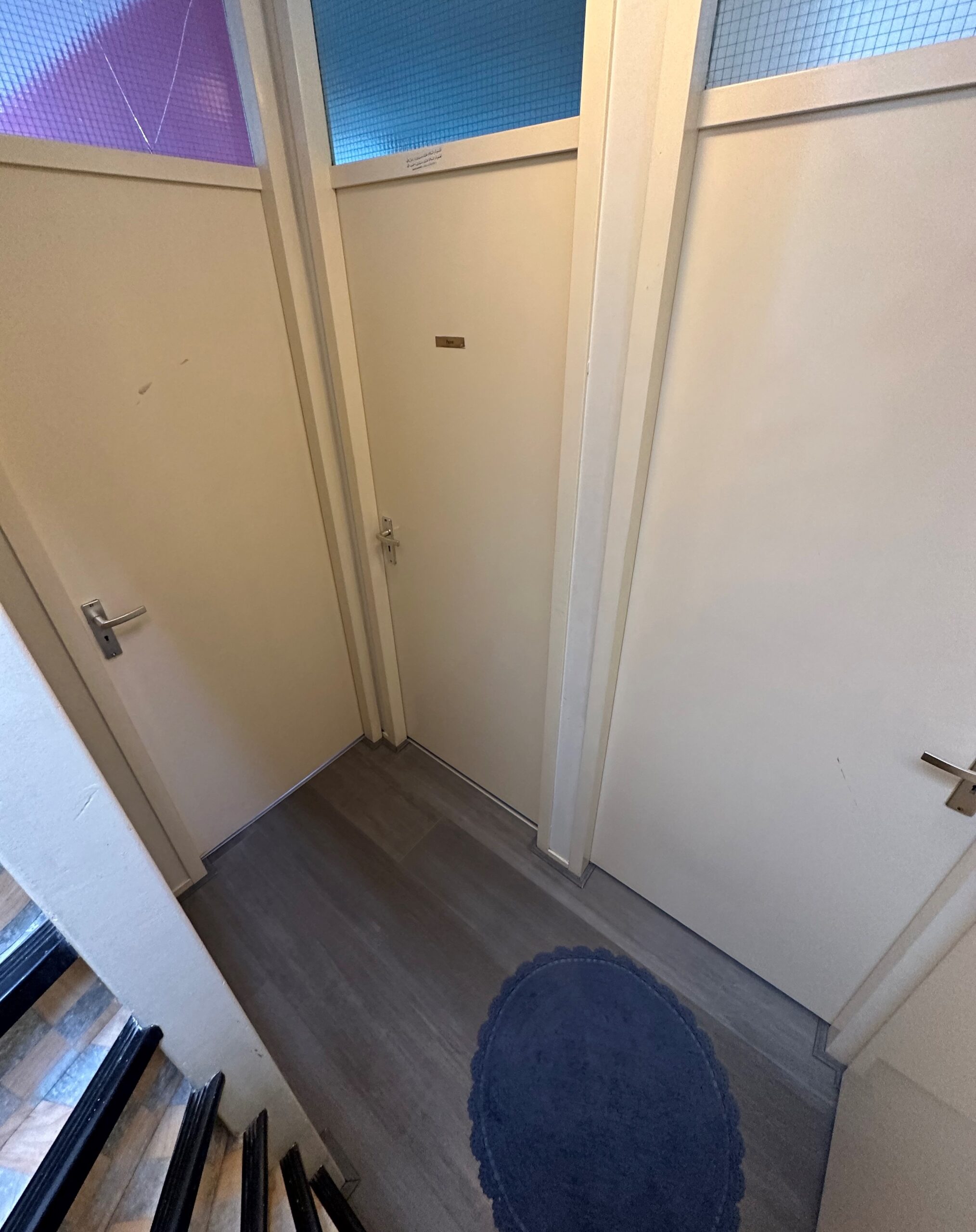 Twee slaapkamers liggen aan achterkant van het huis daar van is een slaapkamer wat groter dan de andere en in de voorkant van het huis is nog een slaapkamer . bovendien de voor kant van de eerste verdieping is gedekt met een nieuwe kunststof kozijnen van een jaar oud.